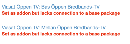 I en hel del fall så är en TV-tjänst angiven som Tillval men har inga tjänstekopplingar till vilka tjänster den är tillval till.