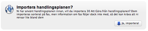 Har du tidigare använt Handlingsplanen erbjuds du möjligthet att importera aktiviteterna från den till din cheklista.
