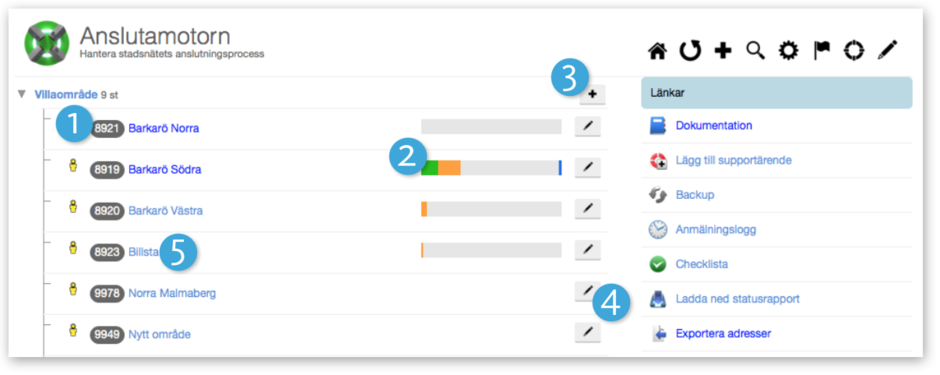 I AdminAnslutamotorn lägger du upp fördefinerade anmälningsbara objekt i form av till exempel ett villaområde eller en bostadsrättsförening. När du planerar objektindelningen bör du tänka på att inte göra dem för stora. Vi rekommenderar max 400-500 adresser per område. Dels för att det blir lättare för er att få en bra översikt men också för att systemet har svårt att hantera datat om det blir för många adresser.