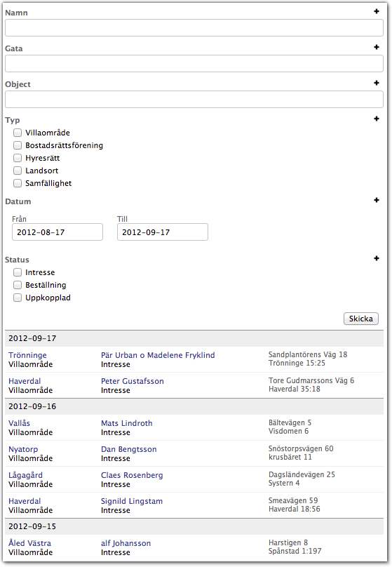Nu kan man söka bland anmälningarna som kommit in till Anslutamotorn. När du går in i Anslutamotorn så hittar du under Länkar en länk till "Alla anmälningar". Där får du en kronologisk lista över alla anmälningar som kommit in och du kan söka fritt bland dem för att hitta dem som kommit in mellan vissa datum, för vissa objekttyper, status, gatunamn och objektnamn.
