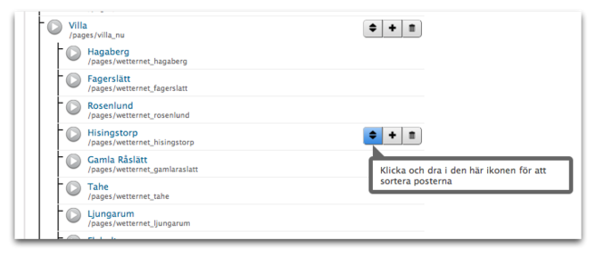 I vissa moduler i Atlas kan man sortera posterna manuellt, och i vissa är till och med hierarkiska. Menymodulen är ett bra exempel på detta. Tyvärr så var den javascript-kod vi använde för sorteringen lite buggig i vissa webbläsare och nu har vi byggt om den. Sorteringen går till på det här viset: