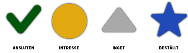 I enlighet med webbtillgänglighetslagen så har vi gjort en uppdatering på symbolerna i anslutamotorn nu. WCAG säger att man ska inte symbolisera något med enbart färg och även om det ser lite mer städat ut så får nu symbolerna i kartan i Anslutamotorn både en egen färg och en egen form.