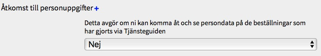 Vissa av er ska dock ha tillgång till personuppgifterna här, så därför har vi en inställning i AdminTjänsteguideInställningar under "Beställningar" där ni kan ställa in huruvida ni ska ha full tillgång till personuppgifterna eller inte.