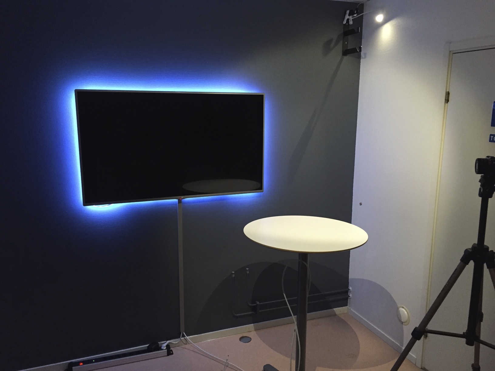 Vi har målat en vägg och satt upp en TV för att visa presentationer på medan vi spelar in utbildningen. Det ser riktigt bra ut och förhoppningsvis så blir slutresultatet det med.