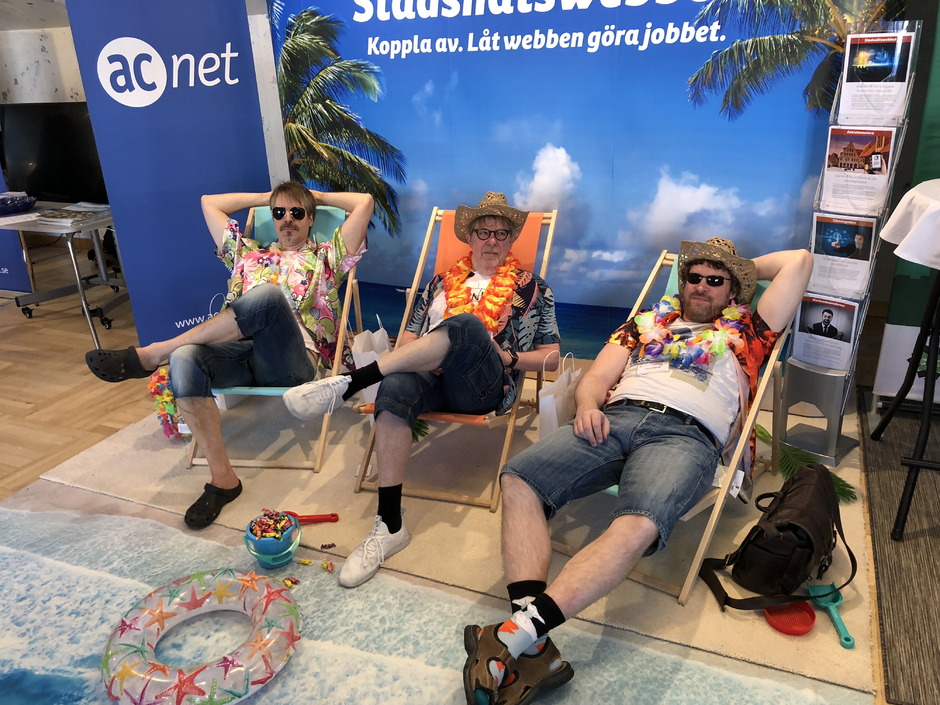 I Umeå gick vi ett steg längre med "Koppla av. Låt webben göra jobbet" och tog med oss en söderhavsstrand, solstolar och kopplade av. Bästa montern, tyckte många.
